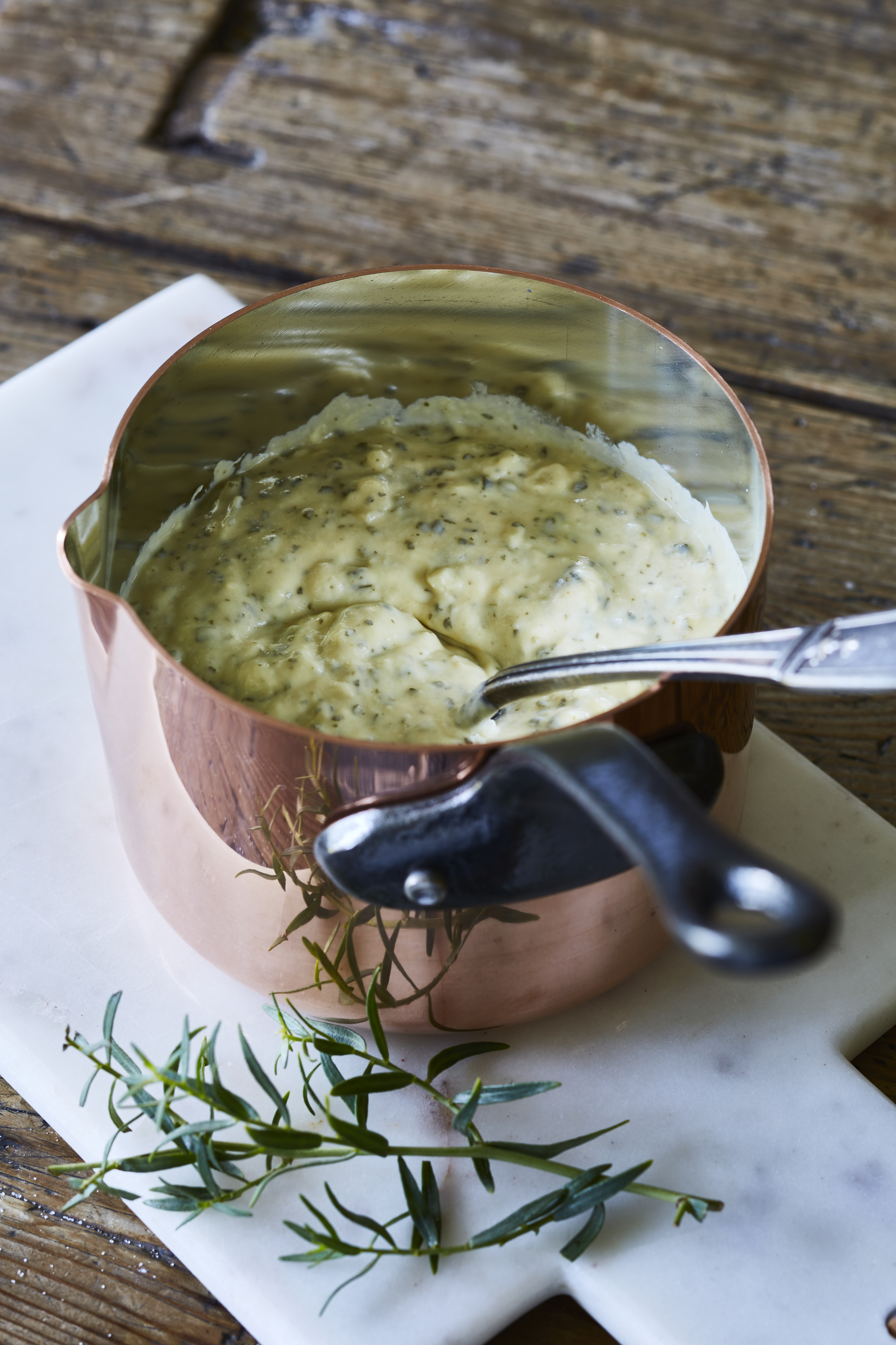 6 / Adjust the seasoning and add the remaining tarragon.